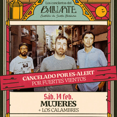 Debido al Es-Alert por previsión de fuertes rachas de viento para mañana como medida preventiva para garantizar la seguridad de las bandas, el público y todo el equipo, nos vemos obligados a cancelar el concierto programado de Mujeres y Los Calambres.